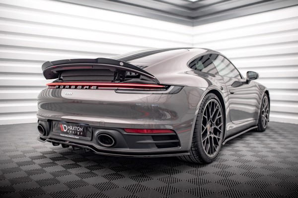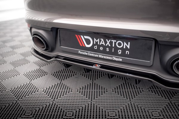 Maxton Central Rear Splitter (With Vertical Bars) Porsche 911 Carrera 4S 992 - Gloss Black