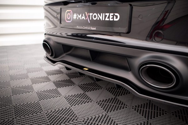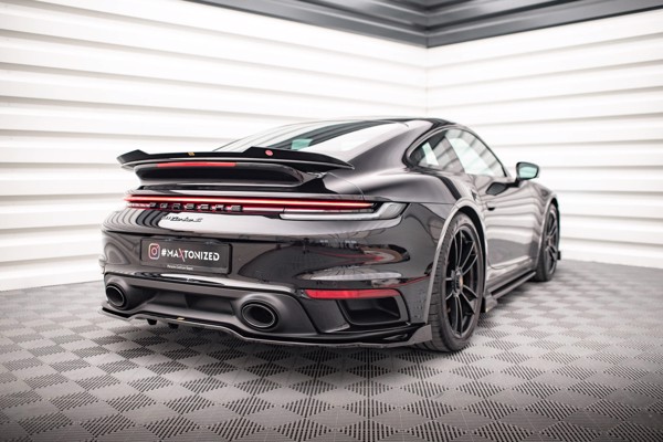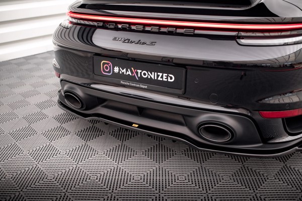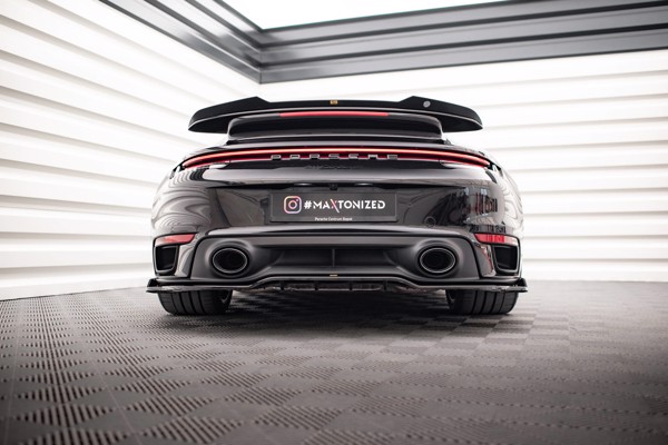 Maxton Central Rear Splitter (With Vertical Bars) Porsche 911 Turbo S 992 - Gloss Black