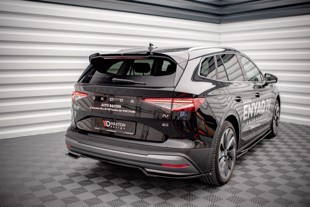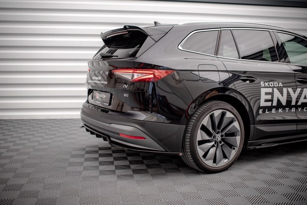 How does this Skoda Enyaq iV central rear splitters stand out? - it’s available in a number of surface looks - it’s moisture-resistant - it has a UV-repelling layer - requires no painting - it’s TUV MATERIALGUTACHTEN certified