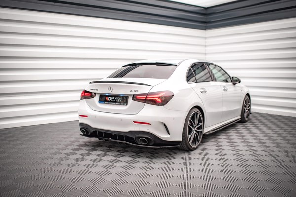 How does this Mercedes A 35 AMG Sedan V177 central rear splitters stand out? - it’s available in a number of surface looks - it’s moisture-resistant - it has a UV-repelling layer - requires no painting - it’s TUV MATERIALGUTACHTEN certified