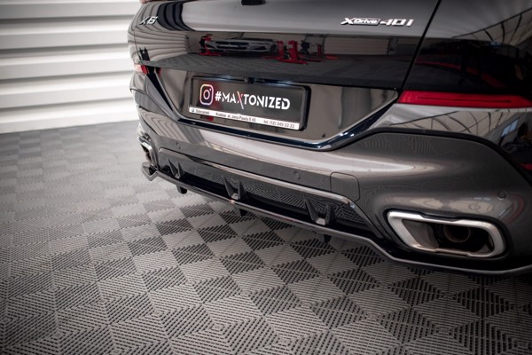 Maxton Central Rear Splitter (With Vertical Bars) V.2 BMW X6 M-Pack G06 - Gloss Black