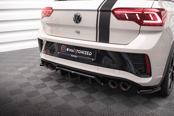 Maxton Central Rear Splitter (With Vertical Bars) Volkswagen T-Roc R Mk1 Facelift - Gloss Black