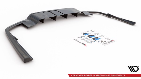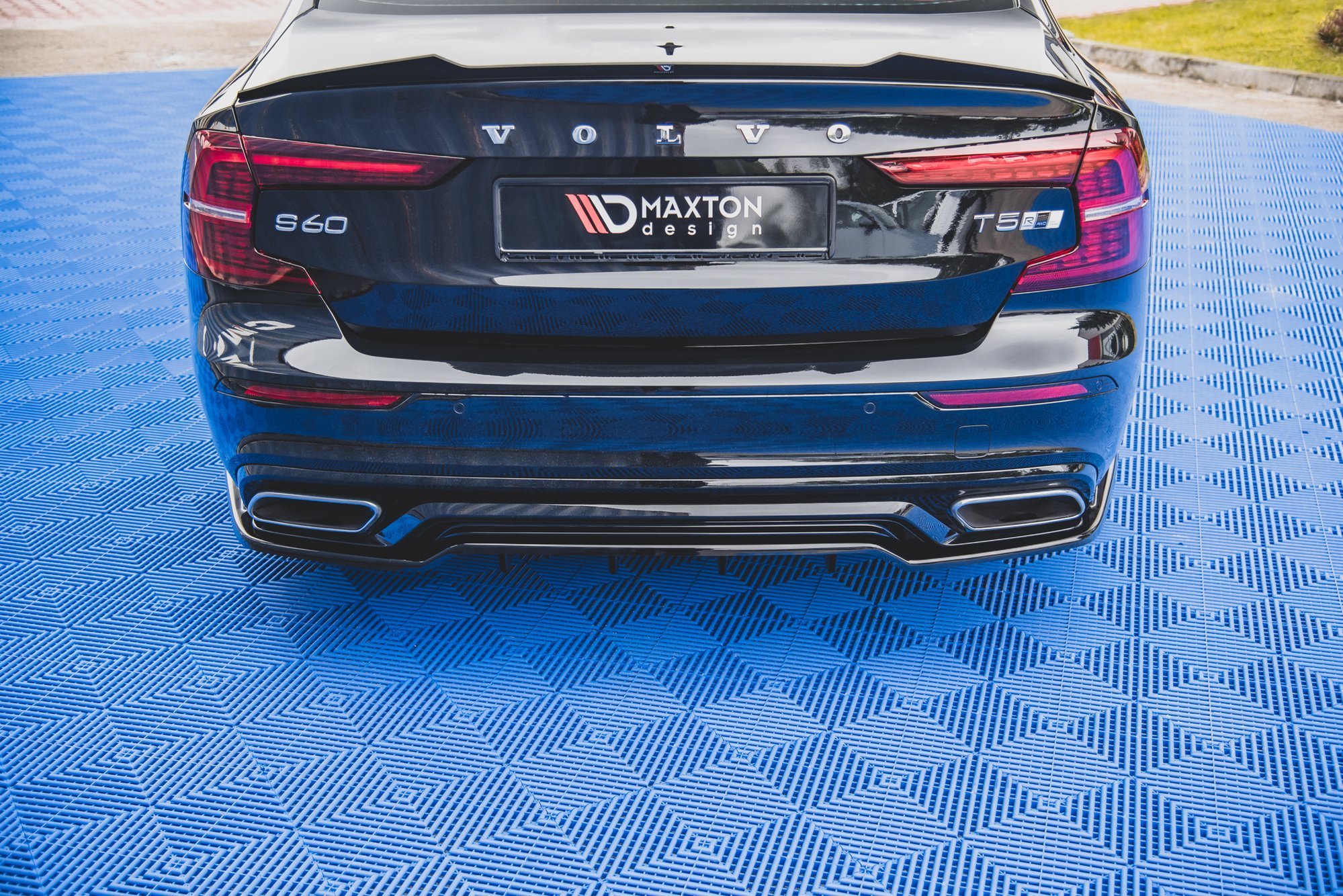 Maxton Central Rear Splitter (With Vertical Bars) Volvo S60/V60 R-Design Mk3 - Gloss Black