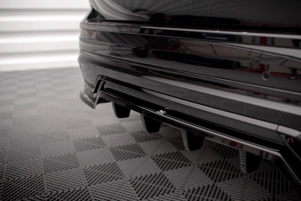 Maxton Central Rear Splitter (With Vertical Bars) Volvo Xc60 R-Design Mk2 Facelift - Gloss Black