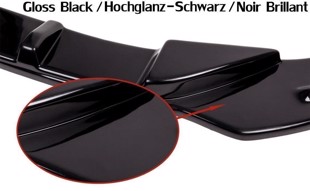 Splitter is in black colour, it's ready for mounting. No need of any additional work, unless you want to paint it for a different colour. Splitter lowers the car visually and improves the grip and vehicle stability. Product is made from ABS plastic.