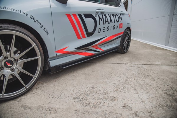 Maxton Racing Durability Side Skirts Diffusers + Flaps Ford Fiesta Mk8 St / St-Line - Black + Gloss Flaps