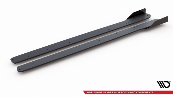 The Ford Focus ST/ST-Line MK4 racing side skirts diffusers with flaps please the eye with their imaginative design and premium production quality – the flaps also contribute to the overall form of this set. The diffusers will lower the optical height of the bodywork and give this model a particularly stylish racing-like stylization. They can be purchased in different varieties of surface finish: black with matte or gloss flaps, and black with red core and matte or gloss flaps.