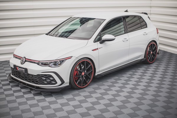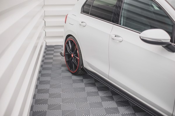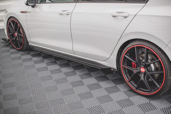 Maxton Racing Durability Side Skirts Diffusers + Flaps Volkswagen Golf 8 Gti / Gti Clubsport - Black + Gloss Flaps