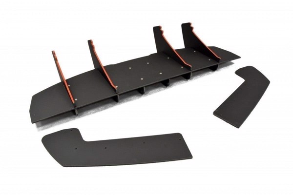 This rear diffuser dedicated to Ford Mustang GT MK6 is an inventive component that allows for comprehensive tuning. It is composed of slick valance and rear side splitters all of which are produced from ABS (CNC) and sport characteristic flat surfaces. These item will underline the character of your car and give it a nice racing-like finish.