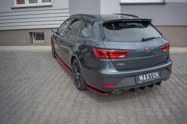 Maxton Rear Side Splitters V.4 Seat Leon Cupra Mk3 Fl Sportstourer - Gloss Black + Red