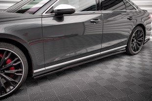 The side skirts diffusers for Audi S8 D5 are manufactured from the highest-quality ABS. The material is marked by its sturdiness, flexibility, and resistance to damage and harmful effects of atmospheric conditions. It is universally employed in the production of not only tuning components and elementary vehicle outfitting. The Maxton Design side skirts diffusers have bee given the TUV MATERIALGUTACHTEN certification. They are topped with a special protective layer to secure them from the damaging influence of UV radiation.