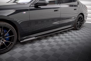 The side skirts diffusers for BMW 7 M-Pack / M760e G70 are manufactured from the highest-quality ABS. The material is marked by its sturdiness, flexibility, and resistance to damage and harmful effects of atmospheric conditions. It is universally employed in the production of not only tuning components and elementary vehicle outfitting. The Maxton Design side skirts diffusers have bee given the TUV MATERIALGUTACHTEN certification. They are topped with a special protective layer to secure them from the damaging influence of UV radiation.