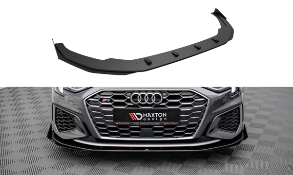 Maxton Street Pro Front Splitter V.1 + Flaps Audi S3 / A3 S-Line 8Y - Black-Red + Gloss Flaps