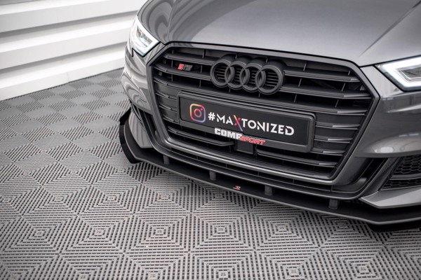 Maxton Street Pro Front Splitter V.1 + Flaps Audi S3 / A3 S-Line Sportback 8V Facelift - Black + Gloss Flaps