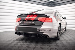 The rear diffuser Street Pro for the Audi S8 D4 is a tuning part in the tuning process that was made of ABS material. The mentioned material has an increased resistance to moisture and will not deform unsightly as a result of extremely low or high temperatures. ABS is a flexible and durable material that is certified by the TUV MATERIALGUTACHTEN certificate. Thanks to the mentioned properties, ABS is willingly used in the automotive industry, not only for the production of tuning parts, but also for standard car equipment.