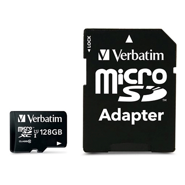 Mikro SD kort fra Verbatim med 128GB hukommelse. Med kortet får du høj kapacitet og hurtig dataoverførselshastighed. Micro SD kortet leveres med en adapter som sikrer at du kan anvende kortet i næsten alle type enheder.