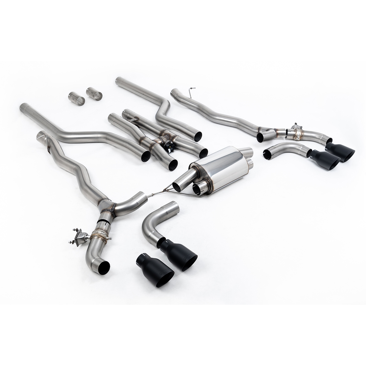 Cat Back System inc. OPF/GPF Bypass with Cerakote Black GT-100 Trims - Required Stage 2 ECU Software - For Vehicles with Slip Joint Connection to OE Downpipes Quad 100mm GT100