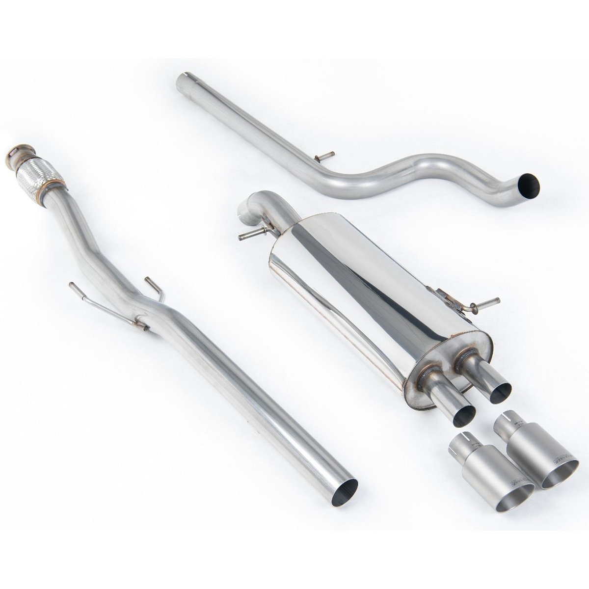 Milltek Resonated - Er udstødninger som er dæmpet ved mellem røret, og har det samme antal af dæmpere som ved en standart udstødning. Det er en god løsning til dig som ønsker en mere diskret lyd.
