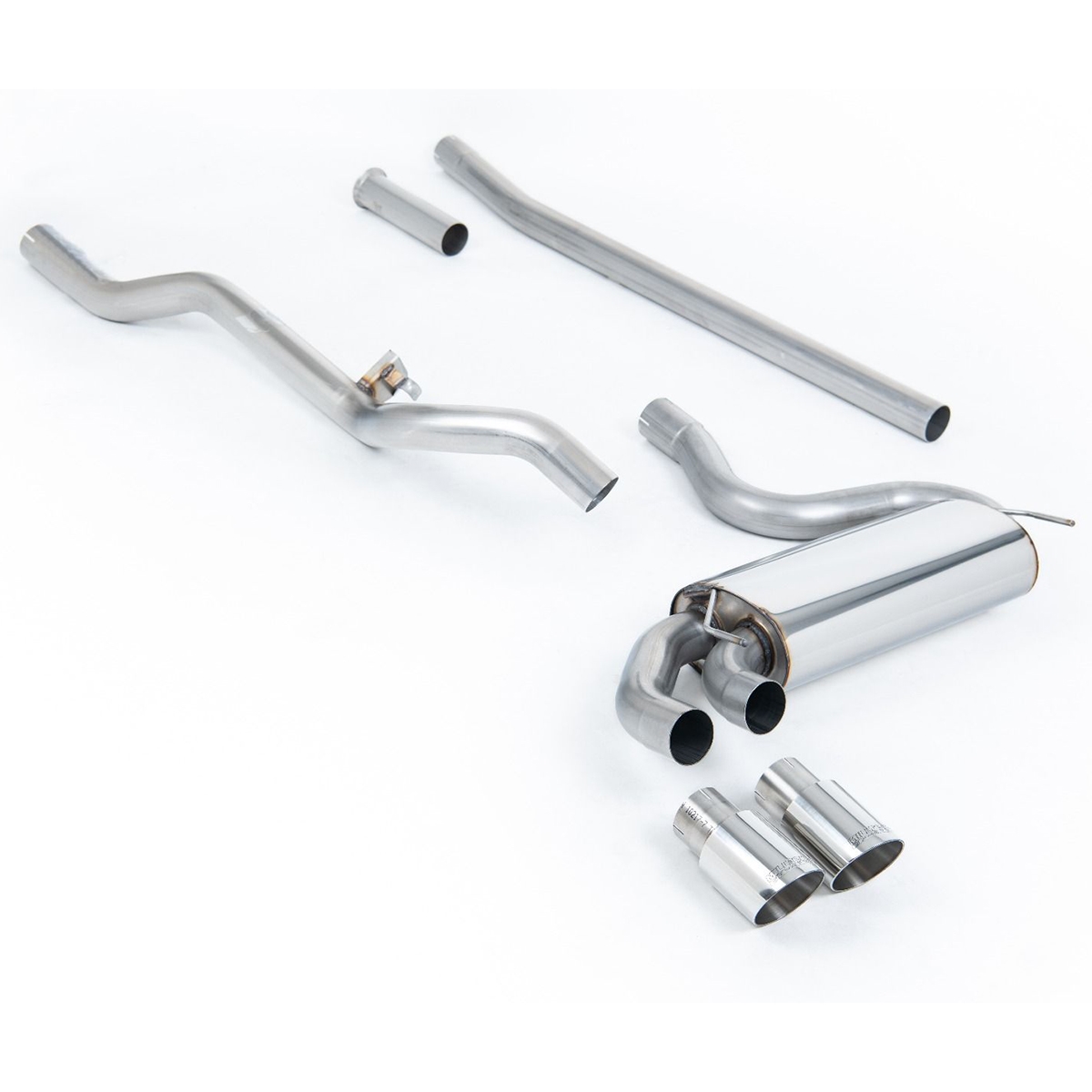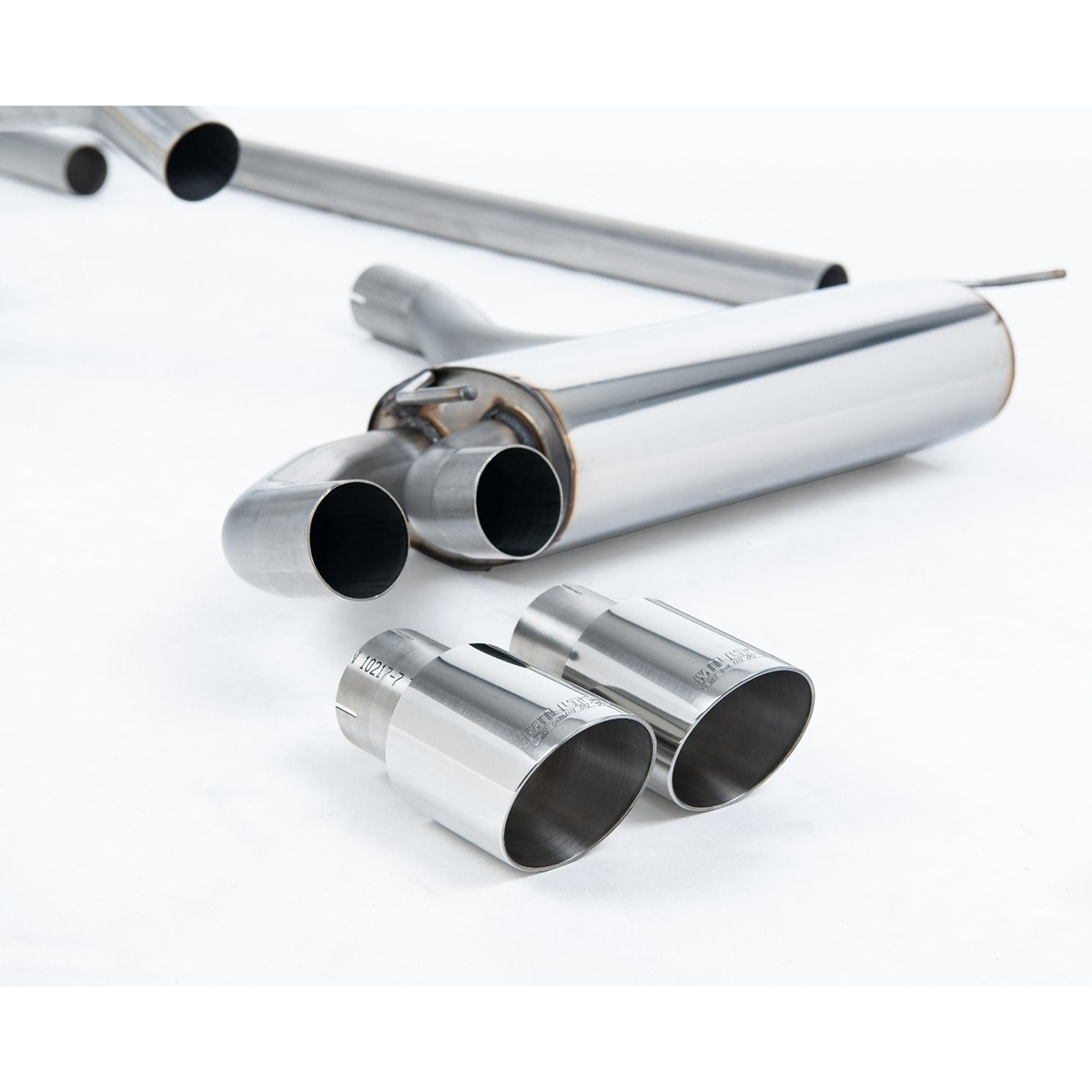Non-resonated (louder). Polished OEM-Style Tips. Requires 4 holes to be drilled into the boot floor to allow fitment of the new Milltek Sport exhaust hangers. Produkttype: Downpipe-back