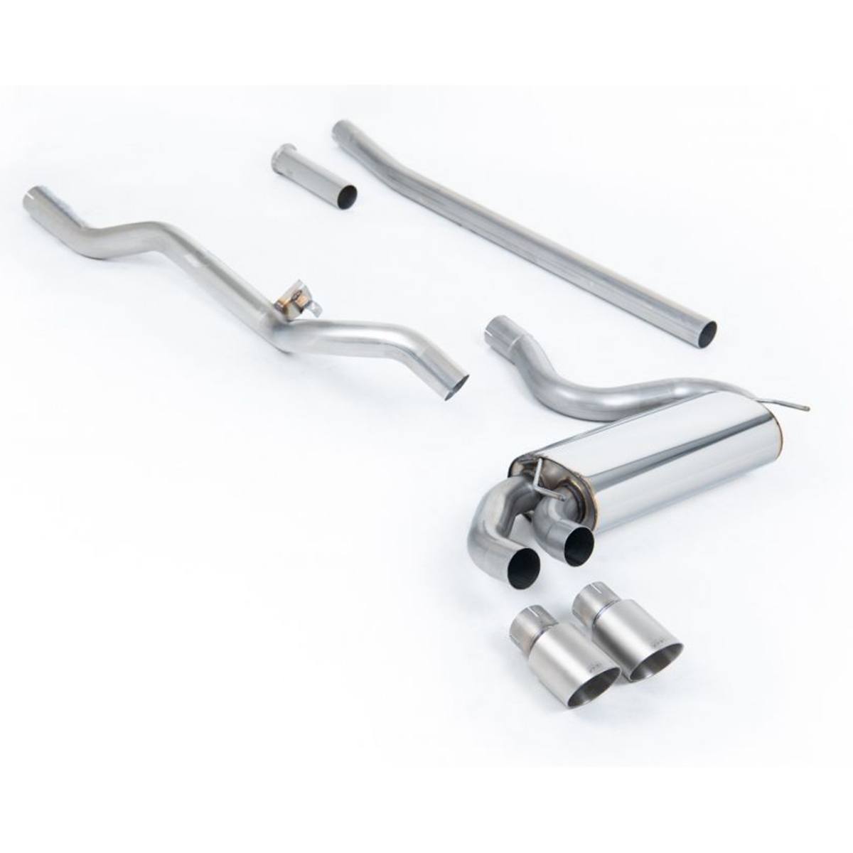 Non-resonated (louder). Titanium OEM-Style Tips. Requires 4 holes to be drilled into the boot floor to allow fitment of the new Milltek Sport exhaust hangers. Produkttype: Downpipe-back