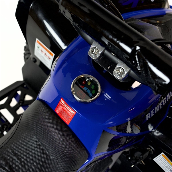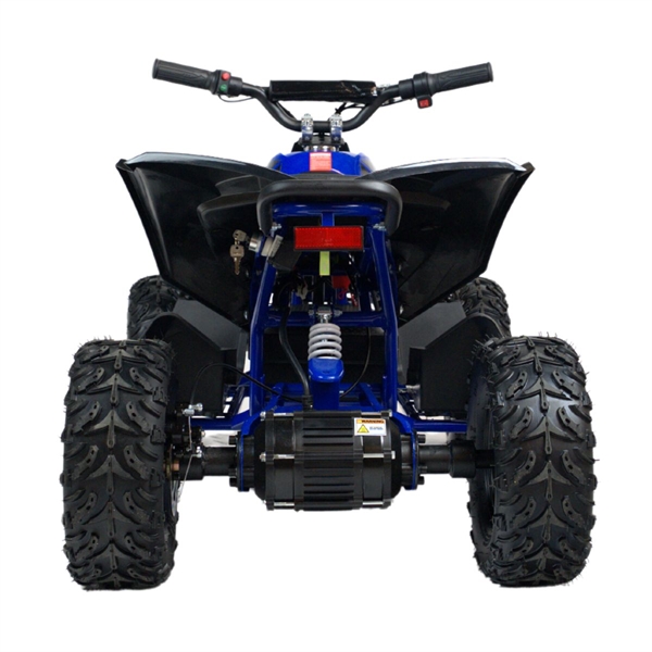 ATV'en er en fartmaskine, der vejer 55 kg og når høje hastigheder for en kraftfuld el-ATV-oplevelse. ATV'en er konstrueret med en metalramme og et dobbelt ledningsbremsesystem, der sikrer en stabil og funktionsdygtig bremse i alle terræner og vejrforhold. En kvalitet, du aldrig før har oplevet i en elektrisk ATV.