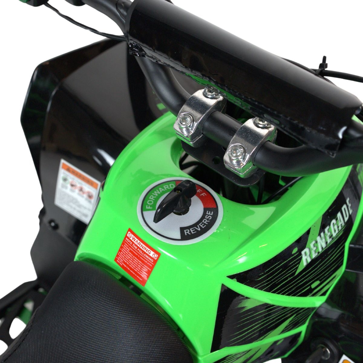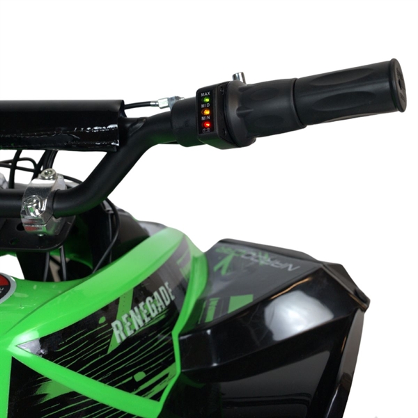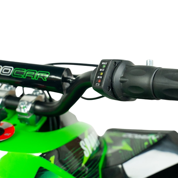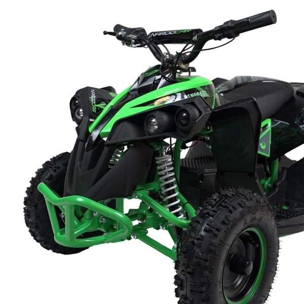 Oplev kvalitet og eventyr i ét – perfekt mini ATV til børn, der søger en lydløs og kraftfuld el-ATV-oplevelse. Denne nye generation af stilfulde og robuste ATV'er – større end tidligere mini-ATV'er er med længere støddæmpere, dobbelte forreste svingarme og meget mere som gør at denne elektriske mini ATV sætter nye standarder.