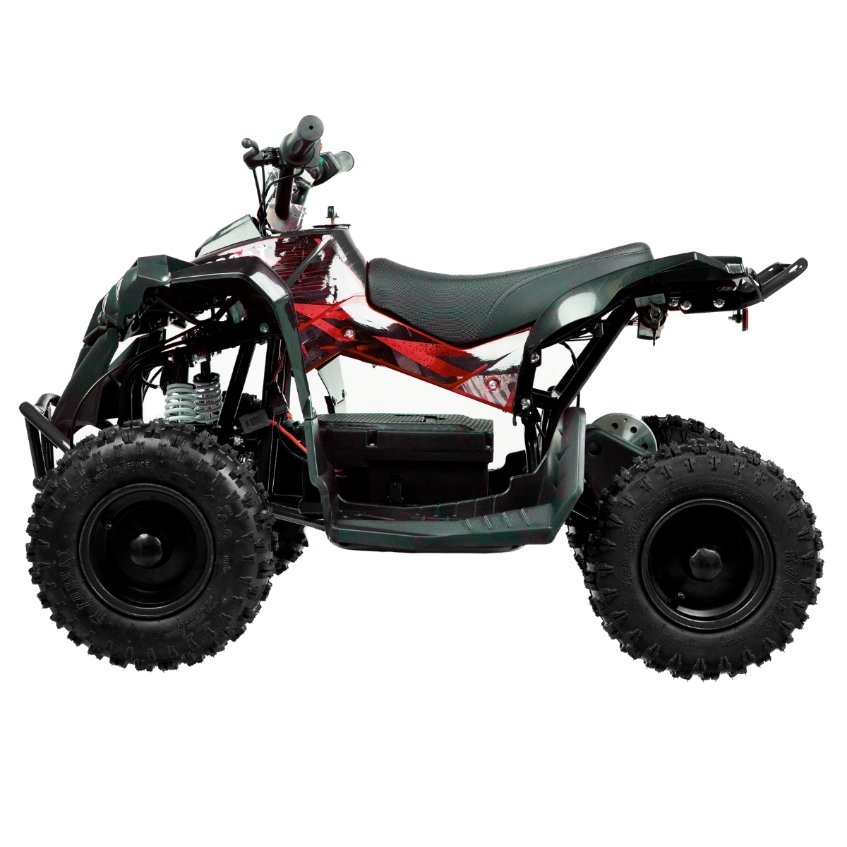 En topkvalitets elektrisk ATV til børn, der kan klare alle terræner uden motorstøj. Græs, grus, sten, jord – alt, hvad en almindelig benzin ATV kan klare.