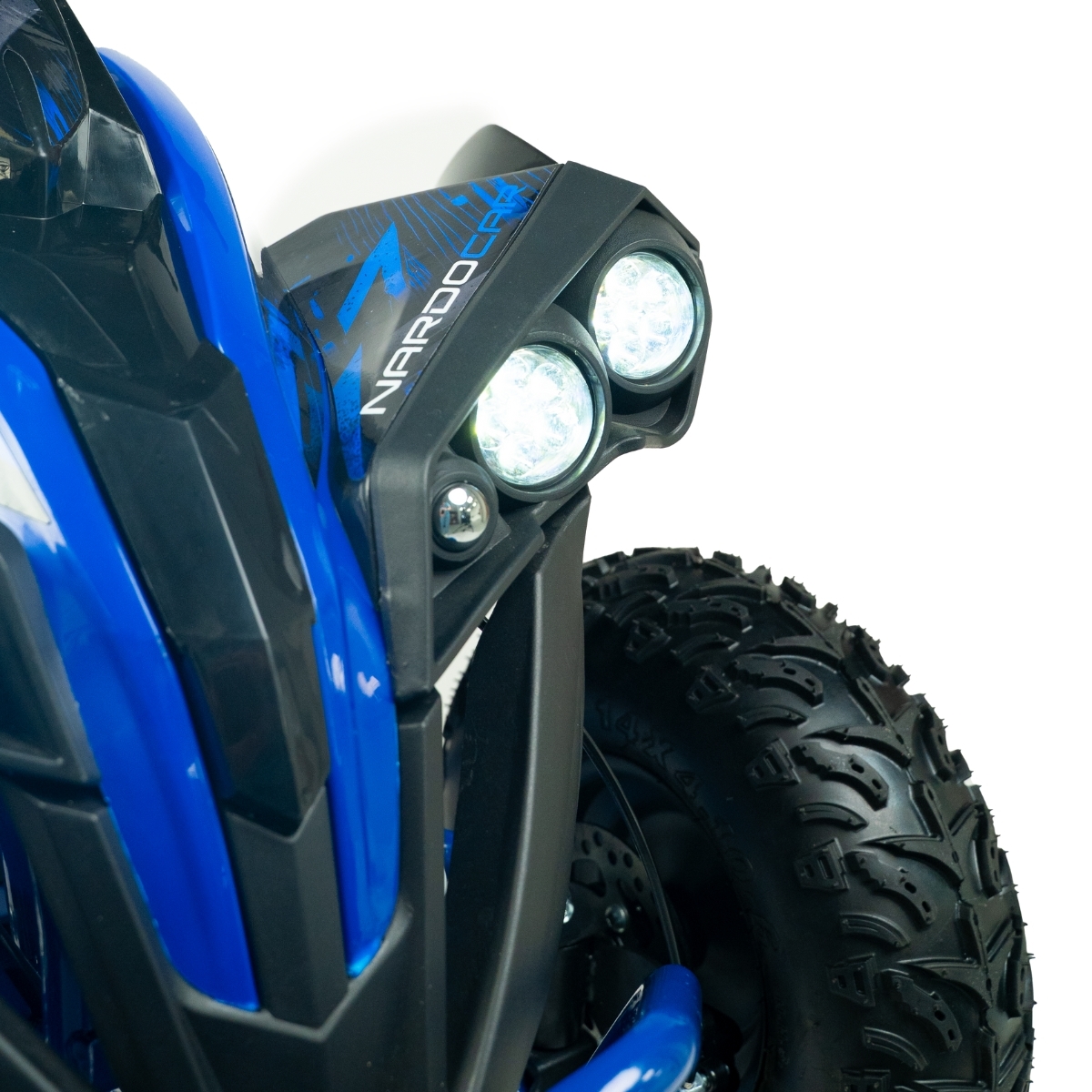 ATV'en er en fartmaskine, der vejer 55 kg og når høje hastigheder for en kraftfuld el-ATV-oplevelse. ATV'en er konstrueret med en metalramme og et dobbelt ledningsbremsesystem, der sikrer en stabil og funktionsdygtig bremse i alle terræner og vejrforhold. En kvalitet, du aldrig før har oplevet i en elektrisk ATV.