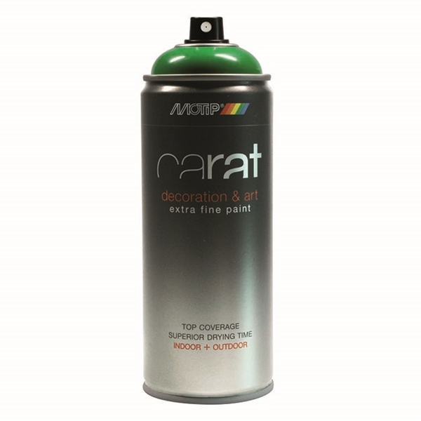 Motip Carat er en højkvalitets dekorativ akryllak, med egenskaberne som en bil lak. Dog med den fordel, at påføringen er så brugervenlig, at alle nu kan få glæde af fordelene ved en spraydåse.