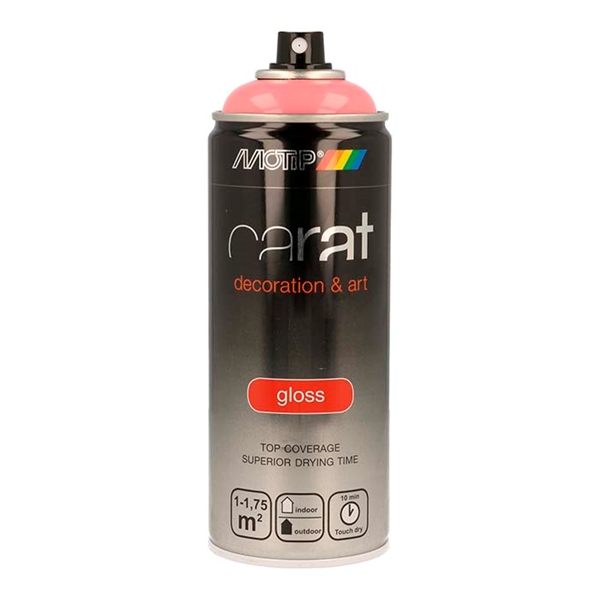 Motip Carat er en højkvalitets dekorativ akryllak, med egenskaberne som en bil lak. Dog med den fordel, at påføringen er så brugervenlig, at alle nu kan få glæde af fordelene ved en spraydåse.