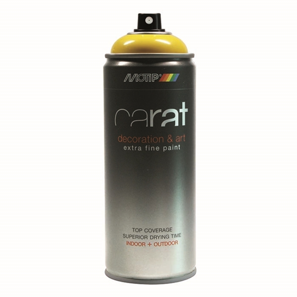 Motip Carat er en højkvalitets dekorativ akryllak, med egenskaberne som en bil lak. Dog med den fordel, at påføringen er så brugervenlig, at alle nu kan få glæde af fordelene ved en spraydåse.