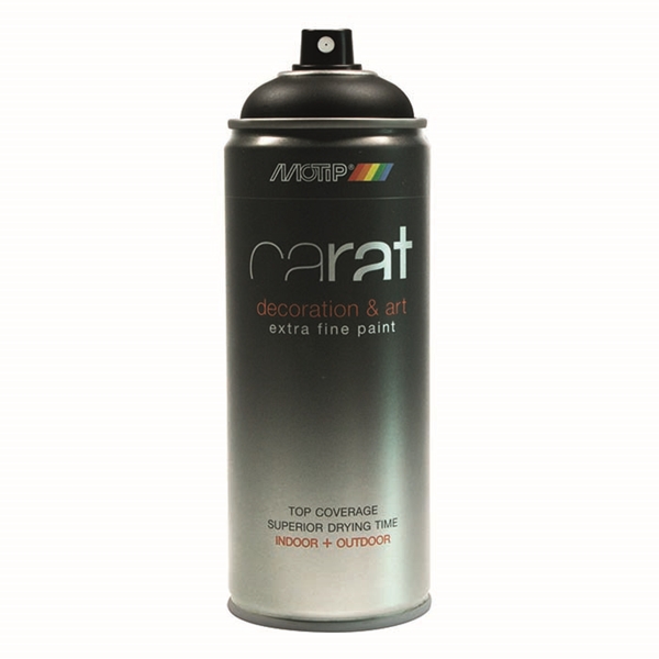 Motip Carat er en højkvalitets dekorativ akryllak, med egenskaberne som en bil lak. Dog med den fordel, at påføringen er så brugervenlig, at alle nu kan få glæde af fordelene ved en spraydåse.