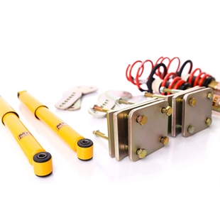 • Front- og bagaksel højdejusterbare (gevinddæmperhus foran, justeringsplader + støddæmpere på bagakslen).
