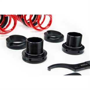 MTS justerbare sænkningssæt kombinerer det bedste fra flere verdener i én komplet løsning – her får du funktionaliteten fra sænkningsfjedre, gevindjustering og standard støddæmpere samlet i ét produkt. Det giver dig mulighed for at tilpasse bilens højde præcist efter dine ønsker, samtidig med at du bevarer fabrikkens komfort og køreegenskaber.