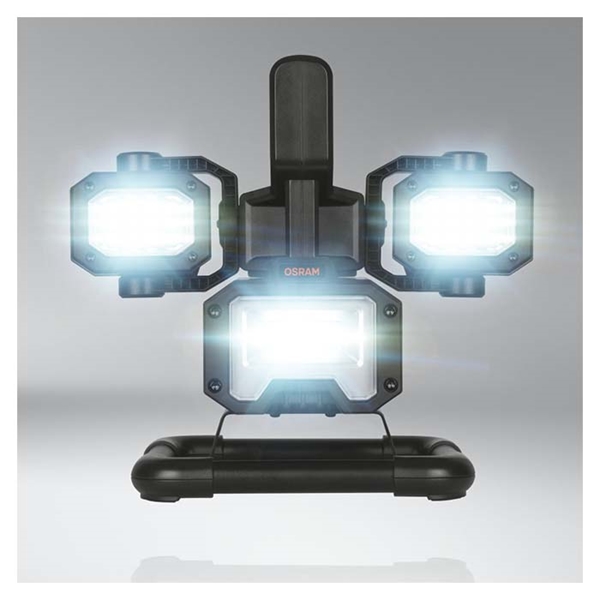 LED-arbejdslampe i høj kvalitet til både privat og professionel brug. Lampen har et multiretnings- og multivariabelt belysningssystem, hvor de enkelte elementer kan bevæges uafhængigt af hinanden, og endda kan tages af. Dette gør den ideel til en bred vifte af anvendelsesområder. Den har tre lysfunktioner, stærk, svag og blinkende, som har en driftstid på henholdsvis 4, 10 og 12 timer. Lampen kommer desuden med et genopladeligt batteri.