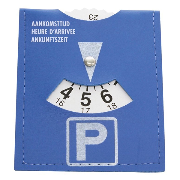 Nemt at indstille ankomsttiden ved hjælp af skiven med tidsangivelse. Ved parkering drejes skiven til ankomsttidspunktet, dette gøres hver halve time. Placer skiven under forruden. Med hollandsk, tysk og fransk tekst.