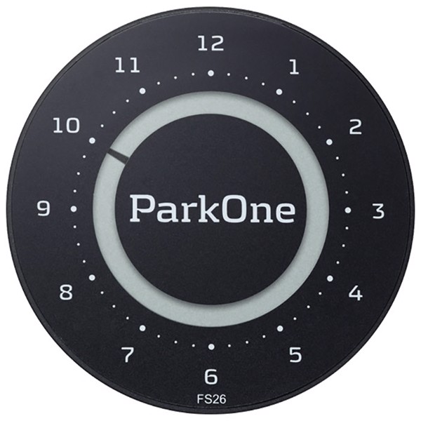 Det elektroniske parkeringsur ParkOne 2 Carbon Black stiller tiden automatisk, når du parkerer. ParkOne 2 er nem at aflæse både ude- og indefra og er enkel at betjene. Den ledningsfri p-skive har et batteri med en levetid ca. 3 år, der er nemt at skifte.