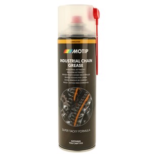 Motip kædefedt er en spray til at smøre kædedrevne transmissioner, som kan klare tunge belastninger.