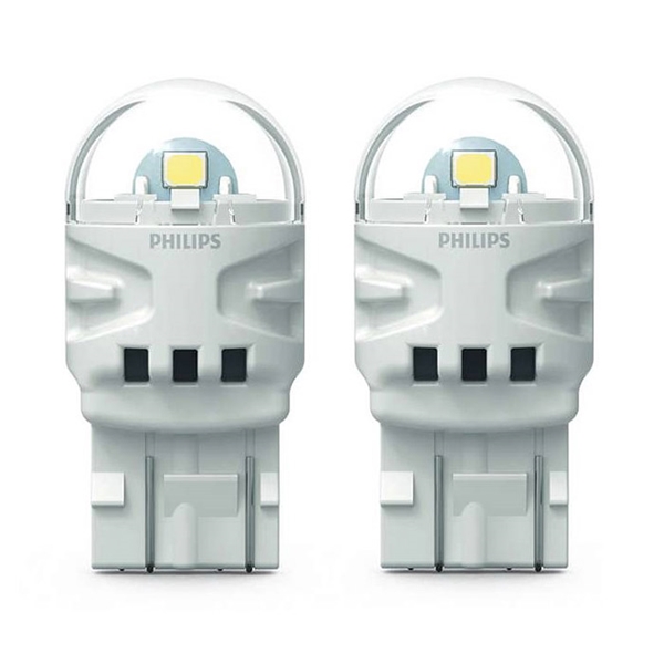 Philips Ultinon Pro3100 sætter en ny standard for LED-pærer til eftermontering. De er kraftige og ser godt ud, så du sikkert og stilfuldt kan signalere. LED-lyskildernes udvendige belysningsvinkel er designet til en mere intelligent lysfordeling for præcist at projicere det udvendige signaleringslys der, hvor der er behov for det. Med vidvinkel og ensartet lys opnår du, at du kan se mere af vejen, mens andre bilister ligeledes kan se mere af dig. Pæren gør det muligt, at du klart kan signalere din hensigt med en stabil og langtidsholdbar LED-lyskilde, hvis levetid er op til 7 gange så lang som almindelige W21W-signallyskilder (Ultinon Pro3100-pæren holder op til 3.000 timer). Denne lyskilde passer i en W3x16d base.