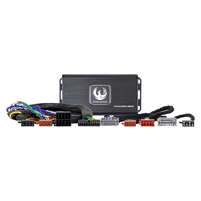 Systemets hjerte er Phoenix Gold ZXM400.4ISO, en kompakt 4-kanals Class D forstærker med 4 x 60 watt RMS. Den leverer væsentligt mere kraft og kontrol end det originale anlæg.