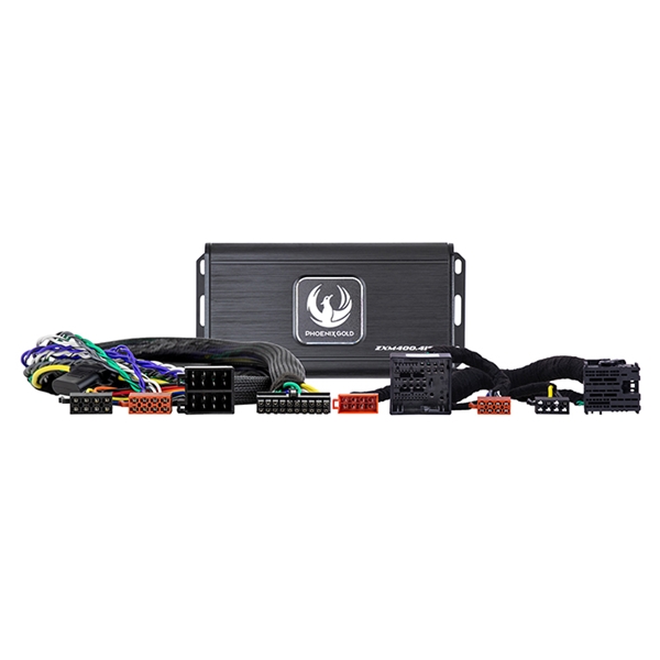 Kernen i kittet er Phoenix Gold ZXM400.4ISO – en kompakt og effektiv 4-kanals Class D forstærker med 4 x 60 watt RMS. Den leverer væsentligt mere kraft og kontrol end bilens fabriksanlæg.