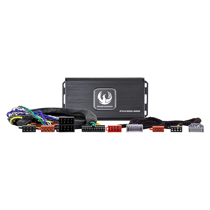 Systemets hjerte er Phoenix Gold ZXM400.4ISO, en kompakt 4-kanals Class D forstærker med 4 x 60 watt RMS. Den leverer væsentligt mere kraft og kontrol end standard lydsystemet.
