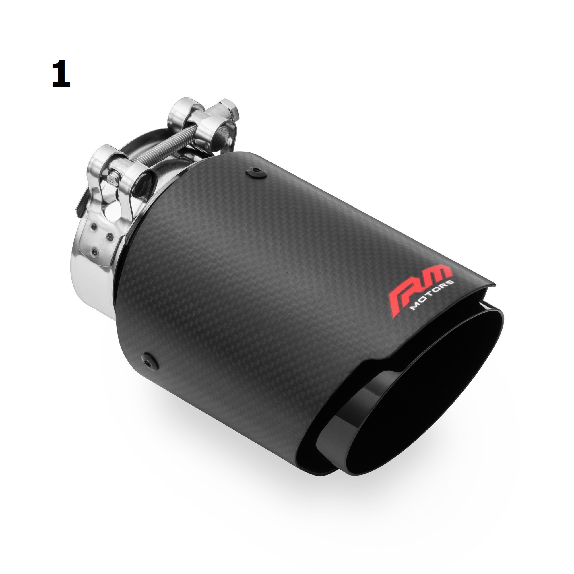 • Choice of RM Motors logo exhaust tips with 114 mm / 4" outlet diameter.