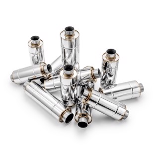 A silencer with a straight-through construction, damped with stainless steel wool and a glass mat resistant to 800 degrees Celsius (glass mat made of full hair - we do not use scraps). Fully welded by welding robot, hand finished. Each element of the product is made using CNC technology. Crack-resistant embossed bottoms have been used.