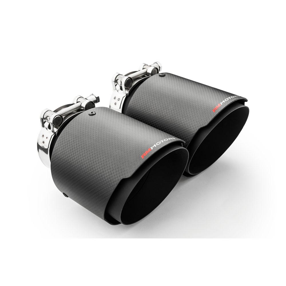 Udstødningsspids i kulfiber og rustfrit stål af høj kvalitet (T304). Indløbsklemmen muliggør nem installation uden boring eller svejsning. Nem justering af positionen efter montering. Produktet har 12 måneders garanti.