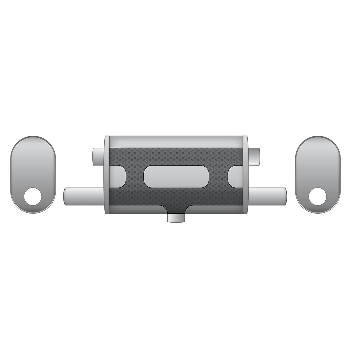 RM Motors Tværgående Straight-Through Lyddæmper Med Elektrisk Ventil E600 Indgangsdiameter 63,5 mm & Udgangsdiameter 2x50 mmE600-2E600-3E600-4