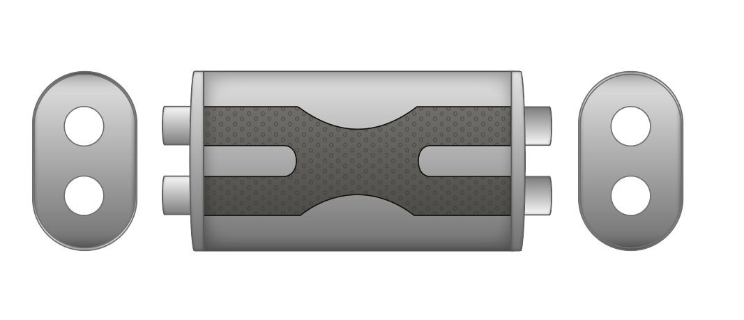 Silencer has an X-pipe inside which equalize the exhaust gases pressure.