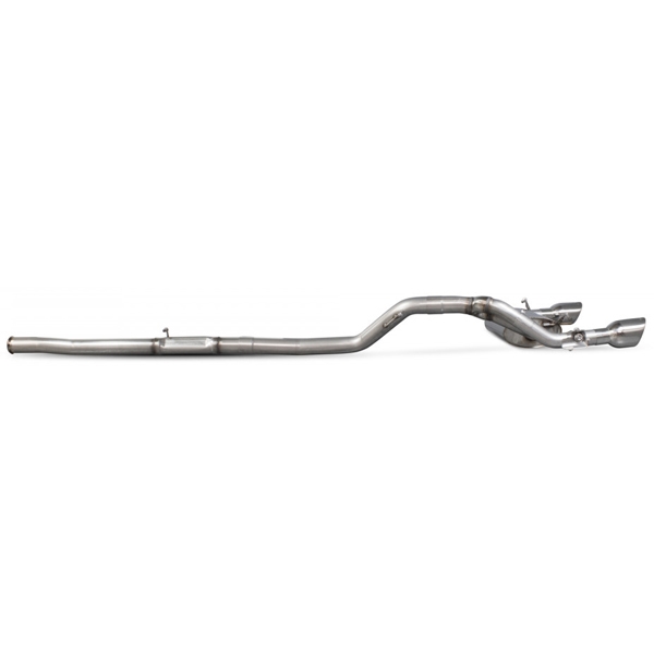 Fremstillet af 76mm/3" T304 rustfrit stål er der i øjeblikket to cat-back udstødningssystemer tilgængelige, ventileret - som bruger den originale motor og kan betjenes af føreren med drive mode select-knappen inde i bilen. Der er også en ikke-ventileret cat-back, der sletter ventilen helt for en kontinuerlig mere sportslig tone. Med fokus på ydeevne har begge systemer en dynamisk pyramideformet flad i midtersektionen, der giver maksimal frihøjde til jorden og propshaft uden at begrænse ydeevnen. I bagenden af systemet findes en akustisk udviklet lyddæmper for at sikre nul droning i hele omdrejningsområdet.
