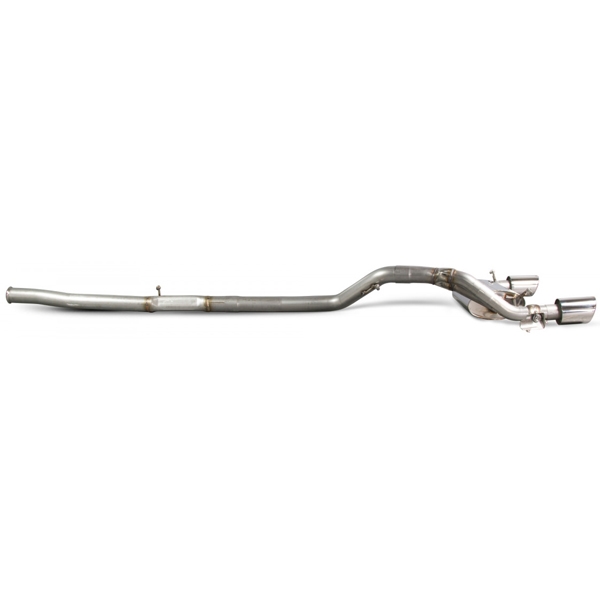 Fremstillet af 76mm/3" T304 rustfrit stål er der i øjeblikket to cat-back udstødningssystemer tilgængelige, ventileret - som bruger den originale motor og kan betjenes af føreren med drive mode select-knappen inde i bilen. Der er også en ikke-ventileret cat-back, der sletter ventilen helt for en kontinuerlig mere sportslig tone. Med fokus på ydeevne har begge systemer en dynamisk pyramideformet flad i midtersektionen, der giver maksimal frihøjde til jorden og propshaft uden at begrænse ydeevnen. I bagenden af systemet findes en akustisk udviklet lyddæmper for at sikre nul droning i hele omdrejningsområdet.
