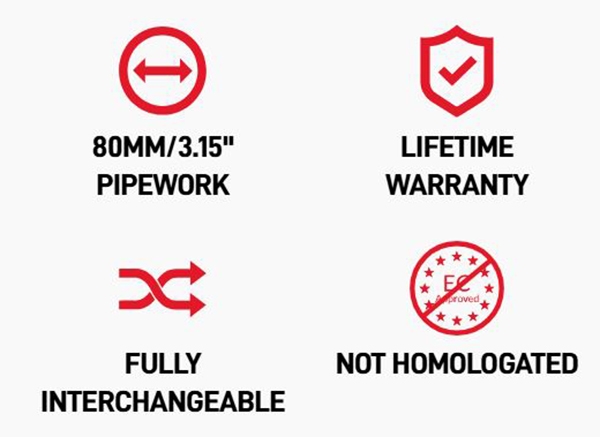 Turboladede motorer skal kunne ånde. For at hjælpe dette er der udviklet en række turbo-nedløbsrør, der passer til højdrevne turboapplikationer. For at muliggøre en stigning i ydeevnen matcher Scorpion rørdiametrene for de højeste ydeevnegevinster.